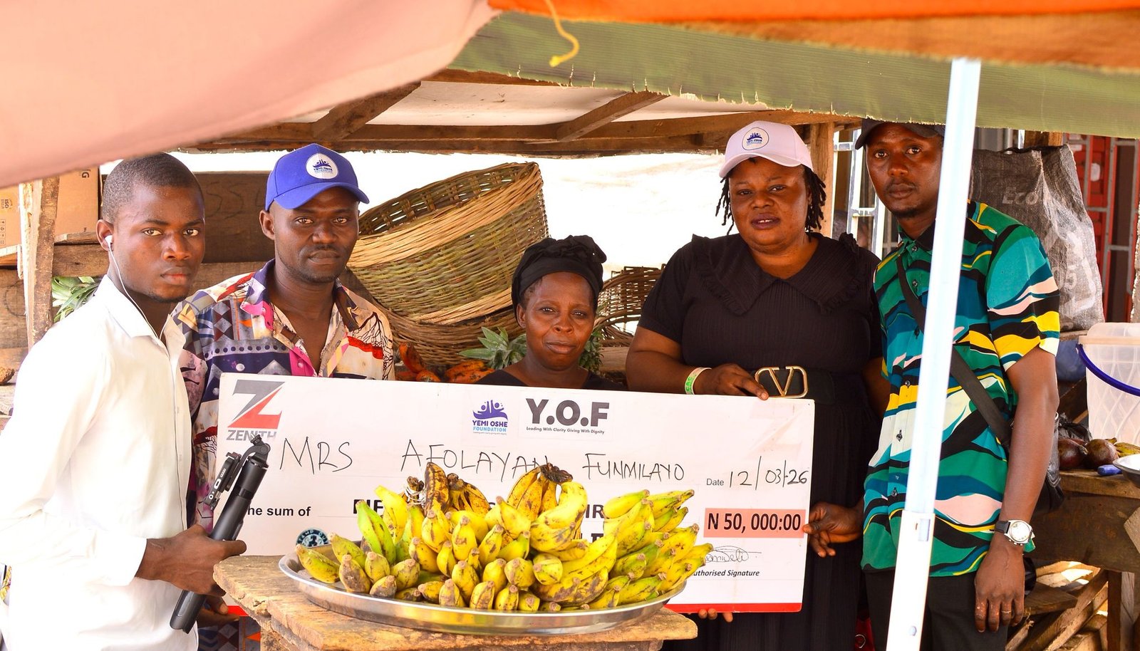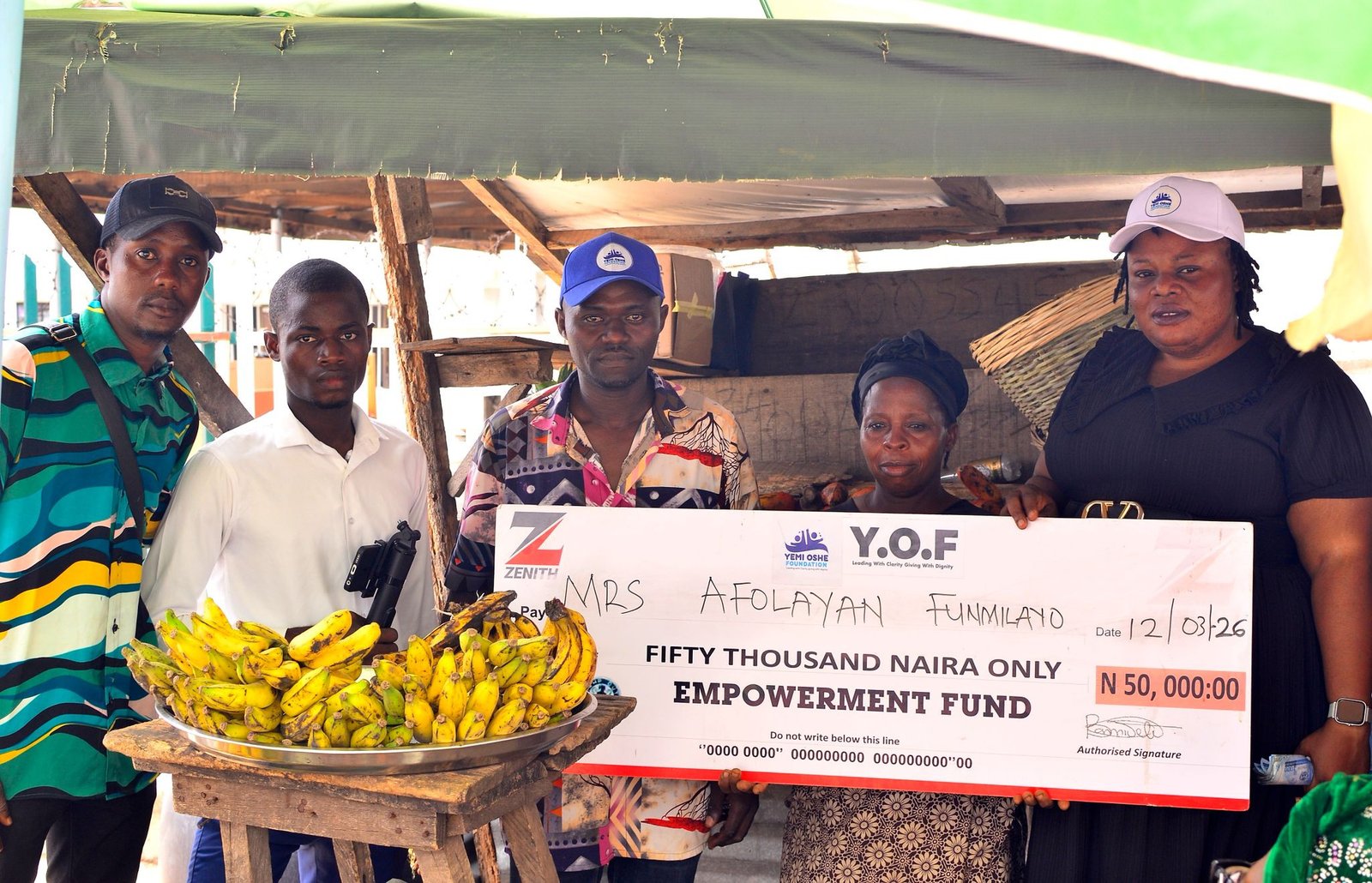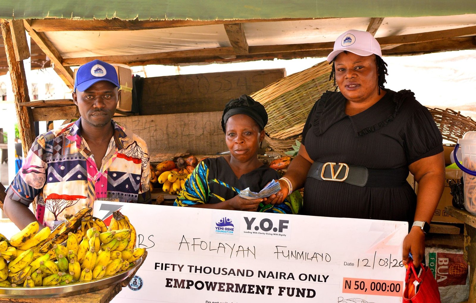 It was a moment of joy and gratitude in Ado Ekiti as the YEMI OSHE FOUNDATION surprised a local fruit seller, Mrs. Afolayan Funmilayo, with a cash support of ₦50,000 to boost her small-scale business.
